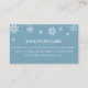 Verwenden Sie diesen Platz, um eine beliebige Eintrittskarte für Ihre Einladung zu erstellen, wie z.B. ein Geschenkregister, gute Wünsche, Flitterwochen-Fonds, Bücher für Baby, Dusche, etc. Mit Schneeflocken für eine Winterdusche.