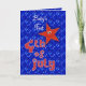 Erster Amerikanische Unabhängigkeitstag Grußkarte für ein ganz besonderes Baby mit niedlichen roten Sternen an einem blauen Himmel, der mit den Lichtern des Unabhängigkeitstages gefüllt ist. Inside text kann mit der bereitgestellten Vorlage personalisiert werden. Originelle Kunst und Design von Anura Design Studio.