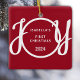 Das erste Weihnachtsschmuck des Babys ist mit dem Wort JOY in stilvoller Schrift-Typografie auf rotem Hintergrund dekoriert. Einfach anpassbar.
