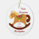 Personalisieren Sie das erste Weihnachtsbaumschmuck dieses Babys mit einem niedlichen Holzrockpferd mit Kindername und -datum. Der formatierte Text kann im einfachen Zazzle-Texteditor bearbeitet werden. Erstellt teilweise mit Grafiken von Scrappin Polizist unter www.scrappincop.com und www.colorfulclipart.com.