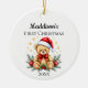 Feiern Sie einen wertvollen Meilenstein mit diesem bezaubernden Baby's First Christmas Ornament. Mit einem niedlichen Teddybär in einer Weihnachtsmannmütze, personalisiert mit dem Namen Ihres Babys, "Erste Weihnachten" und das Jahr vorne. Die Rückseite ist speziell für Sie entworfen, um ein gepflegtes Foto hinzuzufügen, das es zu einem wirklich einzigartigen und individuell gestaltbaren Sake macht. Ideal für neue Eltern, Großeltern oder als nachdenkliches Baby-Duschgeschenk. Dieses personalisierte Ornament ist eine wunderbare Erinnerung an die erste Urlaubssaison und wird für viele Jahre geschätzt.