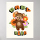 Niedlicher Braunbär mit Blume auf beigem Hintergrund