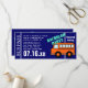 Orangefarbener Bus und königliche Hintergrundfarbe. Erstellen Sie Ihre eigene Route auf diesem Buspass, ändern Sie auch die Ticketfarbe. Anpassbar für jedes Ereignis.