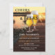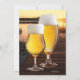 Bachelor Party Einladung mit einem Sonnenuntergang am See mit zwei Biergläsern an einem Steg. Auf der Rückseite können Sie wählen, ob Sie einen dunklen Holzhintergrund oder ein größeres Bild der Brille anzeigen möchten. Wunderschön für ein Fest im Freien, eine Kneipe oder eine GRILLEN.