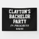 Die ultimative Feier mit unserem Bachelor Party In Progress Banner ankündigen. Passen Sie es mit dem Namen des zu erwartenden Bräutigams und dem Datum der Veranstaltung an. Lass allen, dass das Party eingeschaltet ist, und mach dich bereit für eine lustige Nacht. Bestellen Sie noch heute unser personalisiertes Banner und machen Sie den Bachelor der letzten Nacht zum besonderen Erlebnis!