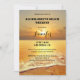 Bachelorette oder Wochenendaufenthalt Einladung Programm Vorlage mit einem romantischen Bild eines Sonnenuntergangs am Strand. Sie können alle Texte anpassen und Felder löschen, die Sie nicht benötigen. Bitte passen Sie auch die Rückseite der Einladung an.
