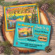 Fabuleux week-end d'escapade de Bachelorette invitations à une destination de lac ou de montagne. Comprend une carte postale vintage teintée à la main avec un look texturé de lin. Joli coucher de soleil sur le lac aux pins. Idéal pour faire du camping, du glamping ou une destination rustique avec ses copines !