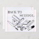 Zurück zum Schulmotiv im Kinderdoodle mit Schulutensilien auf dem Schreibuntergrund.