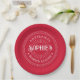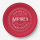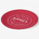 Ein roter Bäcker- oder Bäckerei-Logo-Papierteller mit einem fett dekorativen typografischen Stil in einem runden Logo mit Ihrem Namen oder Firmennamen. Für eine Bäckerei oder ein Dessertrestaurant.