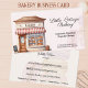 Mit dieser Bakery Window Business Card erfassen Sie das Wesen Ihrer Bäckerei. Freuen Sie sich auf ein charmantes Schaufenster, das Ihre Leidenschaft für Backwaren unterstreicht. In der hübschen Abbildung werden Kuchen, Brot und Gebäck gezeigt, die Wärme ausstrahlen und die Gäste zum Verweilen in Ihren Kreationen einladen. Diese Karte ist perfekt für Bäcker, Konditorei-Koch oder Café-Besitzer. Sie ist vollständig mit Ihrem Firmennamen und den Kontaktinformationen anpassbar.
