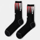 Coole Backgammon Board Socken. Die Oberkante der Socken hat ein rotes und weißes Backgammon Board Design mit passenden Schachbrett Stücken.