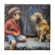 Die Malwiedergabe der 1920er Jahre zeigt einen jungen Jungen und einen streunenden Hund in den Hinterstraßen von Brooklin.