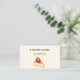 Ein zartes, beige, cremefarbenes Ambiente. Die Einrichtung besteht aus einem Käsekuchen mit roter Erdbeere. Personalisieren und fügen Sie Ihren Namen und Text auf der Vorderseite. Zurück: Vorlagen für Ihr Foto, Name, Titel, Telefonnummer, E-Mail- und Website-Adresse, Ihren eigenen QR-Code für Ihre Website oder Ihr Social-Media-Konto. Facebook und Instagram Icons/account.