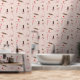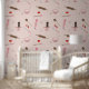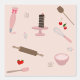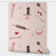 Ein niedliches rosa und braun thematisches Backen und Kochutensilien Muster. Zu den Illustrationen der Bäckerei gehören ein rollendes Button, Whisk, Piping-Tasche, Desserts, Spatulas, Löffel und vieles mehr.