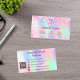 Ein rosa, lila, minzgrüner holografischer Hintergrund. Dekoriert mit rosafarbenen Konfetti und Kuchen. Personalisieren Sie Ihr Firmenlogo und einen Namen auf der Vorderseite: Vorlagen für Ihren Namen, Titel, Telefonnummer, E-Mail und Website-Adresse, Ihren eigenen QR-Code auf Ihrer Website oder Ihrem Social Media-Account. Facebook und Instagram Icons/account.