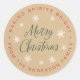 Mit personalisierten Aufklebern aus Ihrer Familie können Sie Ihren Leckereien ein wenig mehr Freude bereiten! Diese speziellen Aufkleber sind mit "Baking Spirits Bright From the (insert your name) Family" in kreisförmigem Text rund um frohe Weihnachten, mit weißen Schneeflocken in der Mitte und einem kraftbraunen Hintergrund versehen.