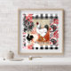 Vintages, ländliches amerikanisches Design mit weißem Brahma-Hahn, Paisley, Gingham und Damast, Alphabet und Blumenelementen. Ideal für eine Landterrasse oder eine Landküche.