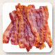 Bacon is a type of salt-cured pork[1] made from from various cuts, typically the belly or less fatty party of the back. It is eaten as a side dish (partiarly in breakfasts), used as a central ingredient (e.g., the bacon, lettuce and tomato sandwich (BLT), or as a flavouring or akzent (as in bacon crumbles in a salad). Bacon is used for barding and larding roasts, especially game, including venison and pheasant, and may also used to insulate or flavour roast joint being layered onto the meat. Word is derived from the Proto-Germanic *bakkon, meaning back meat.[2] Uncooked cured and smoked side bacon After being pan-fried Meat from other animals, such as beef, lamb, chicken, goat, or turkey, may be cut, cured, or wothers Aufbereited to Reses Bacon, and may even be referred to as, for example, turkey bacon.[3] Such use is common in areas with signifikant Jewish and Muslim population as both religions prohibit the consumption of pork.[4] Vegetarian bacons such as "soy bacon" exist.