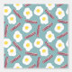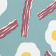 Ein lustiges Essen Thema Bacon und Ei-Design auf einem aquamarinen grünen Hintergrund, perfekt für Ihre Küche, Abendessen oder Café. Originelle Kunst von Nic Squirrell.