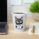 Fügen Sie Ihrem Tag etwas Spaß mit dieser Papiertasse "Bad Cattitude" hinzu! Dieses spielerische Kunstwerk mit einem Mugshot einer schelhaften schwarzen Katze, die ein Schild mit den Worten 'Bad Cattitude' trägt, ist perfekt für Katzenliebhaber, die ein wenig versauten und felinen Charme schätzen. Ein großartiges Geschenk für jeden, der Katzen mit Persönlichkeit und Witz liebt.
