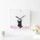 ~Bad Kitty~ WALL CLOCK/PINK Quadratische Wanduhr