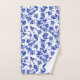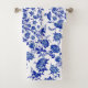 Sortierten Standard-USA Badtuch-Set in meinem Blumendruck der historischen Jacobean Kamelie in einem frischen, modernen Delft-Blau auf Alabasterweiß.