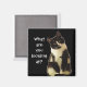 Schwarz-Weiß-Katze mit Haltungsmotto "Was schauen Sie sich an" auf Magnet.