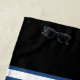 Moderne schwarze, blaue und weiß gestreifte nautische Boote Name Angelfisch Willkommen am Strand Handtuch