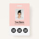 Personnalisez facilement ce pastel rose vif Insigne de nom d'employé personnalisé avec photo, Code de la barre de numérisation et 3 logos d'entreprise multiples. Vous pouvez télécharger 3 logos d'entreprise différents, parfaits pour les partenariats et les sponsors. Un design d'entreprise simple, dans des couleurs roses et blanches girly entièrement personnalisables en tailles avant et arrière, sans-serif polices de base et moderne et un look professionnel et clair. Disponible avec cordon, clip métallique ou avec rétractable. Pas de commande minimum.