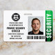 Badge de sécurité professionnelle avec photo de profil et logo de l'entreprise. Ce modèle modifiable peut être personnalisé avec une photo, un nom, un titre de travail, un numéro d'identification, une société, une date d'expiration, un code à barres et un logo pour la marque. Un design moderne avec des rayures dégradées et une police propre. Il offre un texte entièrement personnalisable pour s'adapter à votre marque d'entreprise. Idéal pour divers lieux de travail et rôles tels que le gardien de sécurité, l'agent de protection rapprochée, la sécurité privée d'entreprise, la sécurité des magasins, le garde du corps personnel, le portier officiel, l'équipe d'événements, les vendeurs au détail, le personnel médical, le laissez-passer pour petite entreprise, les étiquettes de nom de conférence et plus encore! Couleurs imprimées : noir, blanc et vert. Magasinez la collection pour des idées et des fournitures de produits de sécurité plus populaires à vendre en ligne.