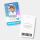 Badge d'identification vertical avec un modèle pour que vous puissiez ajouter vos coordonnées. Possibilité de l'utiliser pour plusieurs postes car vous pouvez modifier les informations pour une autre profession. Photo de l'employé et champs pour le titre ou le rôle, l'hôpital ou l'entreprise, le numéro d'identification de l'employé et "aide à domicile" ou toutes autres initiales ou texte décrivant la certification. Zone de modèle de logo ou vous pouvez conserver notre cœur avec un emblème médical à l'intérieur. Au dos, informations de retour en cas de perte ainsi qu'un modèle d'image de code-barres. Si vous n'avez pas besoin d'ajouter votre code-barres ou QR code, sélectionnez simplement "personnaliser davantage" et supprimez notre image. Conception avec un fond de lavis d'aquarelle aqua, sarcelle, bleu et violet derrière la photo de l'employé.