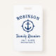 badge à thème nautique de la famille reunion lanyard arborant fièrement votre nom de famille, date de réunion et emplacement dans élégant script de calligraphie avec texte moderne élégant. Ce design présente l'illustration d'une ancre de bateau sur mesure avec une boussole en bleu marine sur blanc ou customiser facilement l'arrière - plan à n'importe quelle couleur désirée.