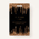 Un badge moderne, élégant et glamour pour une fête d'anniversaire de 21e (ou tout âge). Un arrière - plan noir avec parties scintillant d'or faux goutte, la peinture goutte à goutte. Personnalisez et ajoutez un nom. Le nom est écrit avec un script de style moderne écrit à la main avec des swashes. Le texte : VIP Numéro 21 est écrit en couleur dorée. Pour que les swashes ne suppriment que le nom de l'échantillon, laissez les espaces ou émoticônes devant et après le nom. Retour : détails de votre fête.