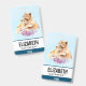 badge de nom personnalisé avec un joli tableau aquarelle d'un lion mère tenant son bébé. Un joli bouquet fleuri violet en dessous ajoute une touche douce à cette image douce et adorable. Arrière - plan bleu clair.