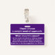 Un outil utile à transporter aux fournisseurs que vous avez choisi une approche neutre de poids et ne voulez pas connaître votre propre poids. Cet insigne peut facilement être remis à, ou être vu par, une infirmière ou un fournisseur comme un rappel non-verbal pour ne pas vous peser (ou ne pas partager avec vous ces nombres de poids). Ce produit convient pour être porté ou maintenu dans un portefeuille. Ce produit est double dégrossi.
