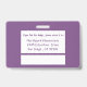 Un badge d'identité violet amusant pour les enseignants ou les aides-enseignants. Personnalisez-le avec les informations appropriées, en utilisant le modèle. SUR LE FRONT : Ajoutez le nom de l'enseignant, le grade et le nom de l'école. Remplacez également l'image par une photo 2" X 2" de l'enseignant en question. SUR LE DOS : Ajoutez toute information supplémentaire, comme l'adresse et le nom de l'école. Il y a aussi un espace blanc pour la signature de l'employé ou pour l'identification d'un code à barres.
