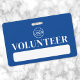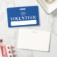 Un design de badge de bénévole simple et professionnel, parfait pour les événements, les entreprises ou les organisations qui dépendent des bénévoles. "Bénévole" est bien visible en haut, avec un espace en dessous pour le nom de l'événement ou de l'entreprise et la date.