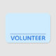 Ce badge respectable de style étiquette nominative effaçable à sec présente le message « BÉNÉVOLE ». Il comporte également une zone où le nom d'un bénévole pourrait être écrit à l'aide d'un marqueur effaçable à sec. Un badge de style étiquette nominative comme celui-ci pourrait éventuellement être porté pour montrer qu'une personne est un bénévole ou un assistant autorisé lors d'un événement.