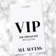 Tous Accéder aux Polices Noires Arrière - plans Blanches Modernes Badge VIP. Parfait pour les défilés de mode, les concerts, les conférences, les conférenciers ou tout événement spécial où vous voulez rendre les invités importants, y compris les fêtes d'anniversaire. Ce badge présente un design épuré et moderne avec un arrière - plan blanc et des polices noires. En bas, "VIP" s'affiche dans une police serif en gras, associée à une typographie simple pour le nom de l'événement, la date et "All Access". Entièrement personnalisable, vous pouvez modifier le texte, les polices et les couleurs selon vos besoins.