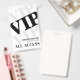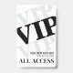 Tous Accéder aux Polices Noires Arrière - plans Blanches Modernes Badge VIP. Parfait pour les défilés de mode, les concerts, les conférences, les conférenciers ou tout événement spécial, ce badge VIP est conçu pour rendre les invités importants, y compris les fêtes d'anniversaire. L'avant affiche "VIP" en noir gras, affiché en diagonale. Derrière, un effet d'ombre gris clair ajoute de la profondeur avec un "VIP" subtil au-dessus et au-dessous. À droite, le nom et la date de l'événement créent un look élégant et moderne, et "All Access" est placé en bas pour une finition propre. Le dos est laissé vide. Entièrement personnalisable, vous pouvez ajuster le texte, les polices et les couleurs en fonction du style de votre événement.