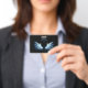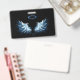Badge Blue Glowing Angel Wings on black background