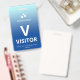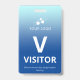badge de visiteur vertical avec un design simple sur un dégradé du bleu pâle au bleu ciel. Un grand V blanc permet de reconnaître rapidement le visiteur en tant que tel. Personnalisez avec le logo de votre entreprise.