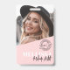 Modern Makeup Artist Employee Badge. This sleek vertical design features your logo on both the front and back for a cohesive, branded look. The front includes a single photo on the top half, shown in color but easily changeable to black and white using the photo filter tool. You can keep the sample image or replace it with your own portrait for a personalized touch.