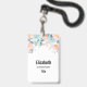 badge de nom personnalisé avec une élégante bordure florale. Fleurs et feuilles en rose et vert.