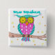 Badge Carré 5 Cm Chouette avec bouton des yeux fleuris