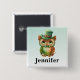 Bouton avec une merveilleuse illustration fantaisiste. Un grand hibou brun aux yeux portant un chapeau vert et une cravate d'arc.