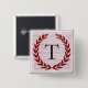 Badge Carré 5 Cm Laurel Wreath Sheet Musique Monogramme initial T