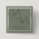 Badge Carré 5 Cm Sage et Mariage argenté sophistiqués
