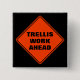 Un panneau de route classique orange de prudence en diamant avertit que les treillis travaillent en avance dans une police noire sans serif épaisse. Un jeu de mots sur les mots d'une enseigne classique, route à suivre, humour de jardin, architecture de clôture, pour pergola ou plantes.