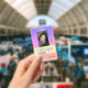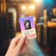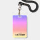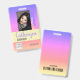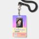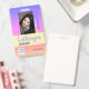Badge nominatif avec un fond ombré de couleur arc-en-ciel, photo, code-barres et modèle de logo. Personnalisez facilement ce badge à votre marque. Pour une personnalisation supplémentaire, envoyez-moi facilement un message ci-dessous. Je serais ravi de réaliser vos souhaits de conception !